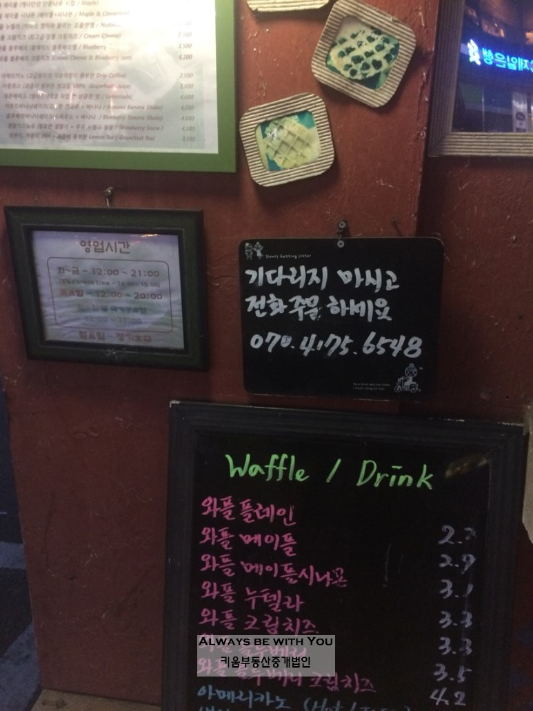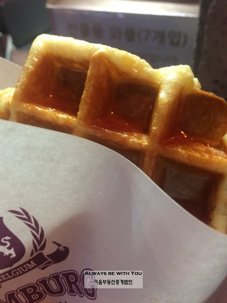 "합정역 7번출구, 벨기에식 수제와플 테이크아웃매장. 저렴한 가격에 갓 만든 따뜻하고 부드러운 와플을 먹어볼 수 있습니다."