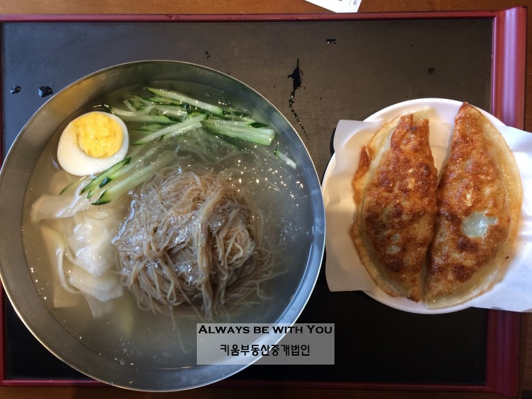"사이즈에 따라 냉면 가격 달리 한 가격 전략은 신의 한수. 사이드디쉬로 먹을 수 있는 군만두와 고기는 금상첨화."