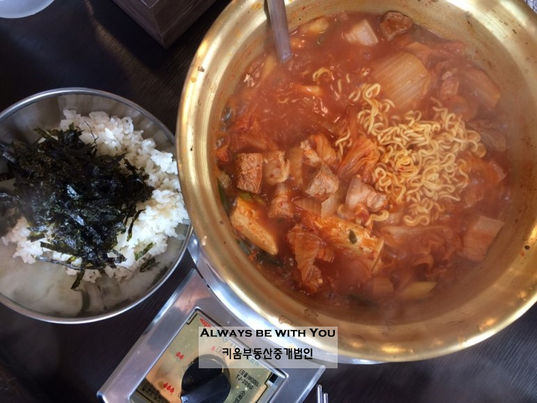 "고기를 아끼면 망한다,라는 가게의 슬로건처럼 돼지고기 듬뿍 들어간 김치찌개 그리고 계란말이가 일품."