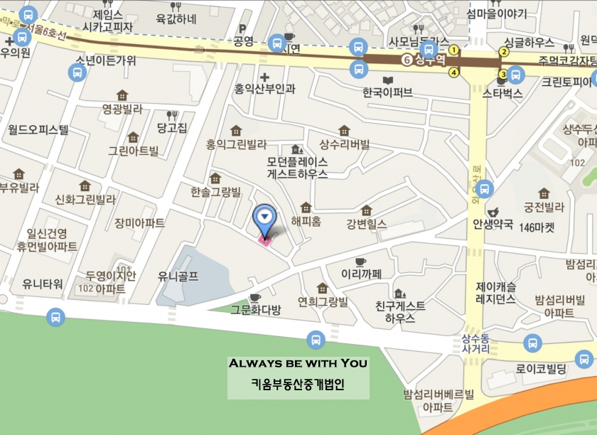 위치는 상수동 이리카페 라인과 합정동을 관통하는 유일한 골목에 위치해 있습니다.